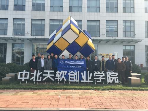 青年计算机科技论坛的组织结构、发展理念和独有特色,阐述了YOCSEF“承担社会责任、提升成员能力、促进成员合作、探索新的机制”的主旨”,报告引起了与会代表特别是企业代表的共鸣,为今后一个阶段YOCSEF天津的发展吸引了产业界的新力量。 在“众创空间入驻企业交流”环节,百度文库(北京龙远鼎盛科技有限公司)总经理孙云喜深入介绍了百度文库的“资源+平台”建设情况;网易(杭州)网络有限公司产品市场部经理宋维衍详细介绍了“网易教育产品的平台建设”;百度文库资源共享和网易中国大学MOOC平台引起了与会高校和企业代表的浓厚兴趣,大家展开了热烈的讨论和交流。同时两位经理分享了两家企业入驻“中北天软创业学院”众创空间后的成功发展经验,大家就众创空间在“大众创业、万众创新”中发挥的软硬件配套基础性作用展开了积极地讨论。 会前在中北天软创业学院创新创业管理中心主任陈超逸的讲解引导下,全体与会代表对“中北天软创业学院”众创空间进行了参观。 参加本次会议的YOCSEF天津代表有:CCF