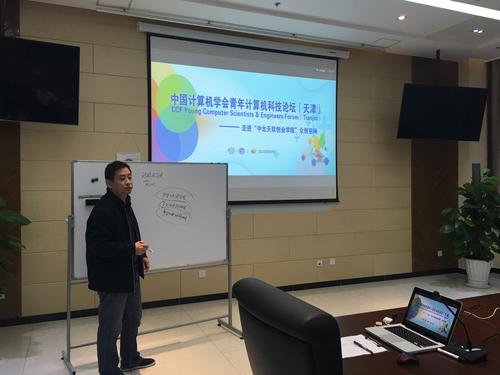 YOCSEF天津主席杨巨成;副主席程明明;学术秘书罗训;AC委员王鑫、汪剑鸣、宋国治、冯景华、胡翔宇;委员饶国政、郝恩平、刘建征到等10余人。来自企业界的其他代表有:曙光信息产业股份有限公司席玉明,天津洪荒科技有限公司曹飞、张琨雨等。 CLUB现场气氛热烈、活跃,讲者和代表互动积极踊跃。本次CLUB在掌声中取得了圆满成功。