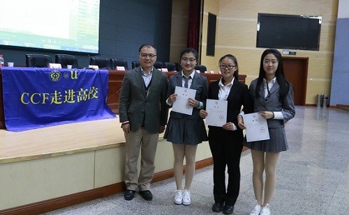 杜子德(左一)、陈熙霖(左二)和CCF山西农业大学学生分会指导委员会合影