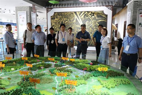 金寨上街去电商平台讲解员对CCF合肥一行介绍“印象金寨”馆内沙盘模型