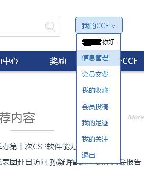 2、 成功登陆后,在右上角“我的CCF”处,选择“信息管理”,进入个人信息管理平台。