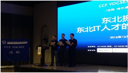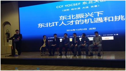 2016年12月3日下午,CCF YOCSEF东北四个分论坛(沈阳、哈尔滨、长春、大连)在东软集团股份有限公司会议中心成功举办了东北振兴下东北IT人才的机遇和挑战论坛。本次论坛由东软集团、360企业安全、东软睿道、品高云支持举办,立足沈阳、着眼全国,邀请了众多行业专家、政府及高校人士参加。CCF YOCSEF总部主席韩银和、总部AC委员邬向前、长春分论坛主席蒋振刚、副主席张永刚、学术秘书翟宏宇、大连主席吴建宁、副主席王新年、哈尔滨主席车万翔、AC委员鹿泽光、冯光升,沈阳主席陶耀东、荣誉委员沈北新区副区长张文国、副主席闻英友、冯勇、王军、学术秘书谢尚飞、AC委员沈阳大数据局副局长姚羽、胡毅等现场参加论坛。此次论坛包括主题演讲、高峰对话(Panel)等版块,吸引了包括沈阳CCF YOCSEF荣誉委员、委员及CCF委员在内的200余名观众现场参加,同时推出线上视频直播和研讨O2O模式,线上参会者超过500人。