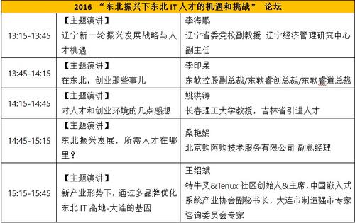 本次论坛还邀请了辽宁省委党校副教授/辽宁经济管理研究中心副主任李海鹏、东软控股副总裁/东软睿创总裁/东软睿道总裁李印杲、长春理工大学教授姚洪涛、北京购阿购技术服务有限公司副总经理桑艳娟、特牛叉&Tenux社区创始人&主席,中国嵌入式系统产业协会副秘书长,大连市制造强市专家咨询委员会专家王绍斌等多个领域专家围绕东北IT人才的留住、吸引、发展等挑战进行了5场精彩的主题演讲。