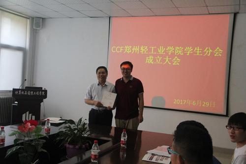 2017年6月29日上午8点,CCF郑州轻工业学院学生分会成立大会在郑州轻工业学院计算机与通信工程学院成功举行。这是CCF在全国成立的第36个学生分会,也是在河南地区成立的第一个学生分会。CCF会员与分部工作委员会主任罗训作为CCF总部代表参加了成立大会,郑州轻工业学院计算机通信工程学院院长甘勇、郑州轻工业学院计算机与通信工程学院副院长张素智、郑州轻工业学院教务处副处长钱慎一、全体指导委员及郑州轻工业学院学生分会的学生代表60余人参加了成立大会,大会由钱慎一主持。