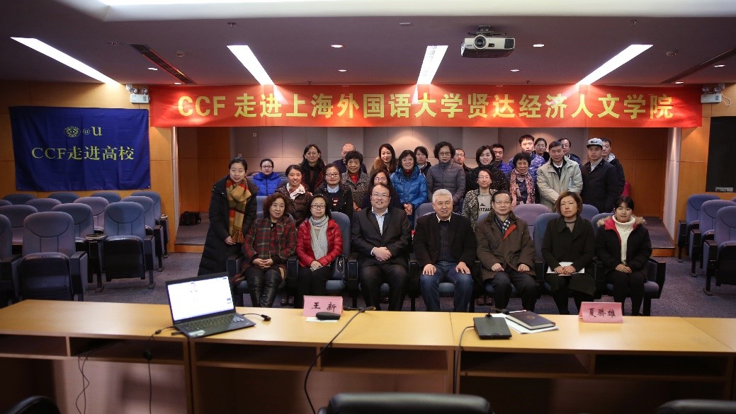 2017年12月12日,中国计算机学会“CCF走进高校”系列公益活动来到上海外国语大学。CCF常务理事、复旦大学信息办主任、计算机学院王新教授作了“基于数据的智慧校园服务初探”的报告。校党委书记夏骄雄、副书记郑虹及各职能部门党政负责人、学生代表参加了本次讲座。