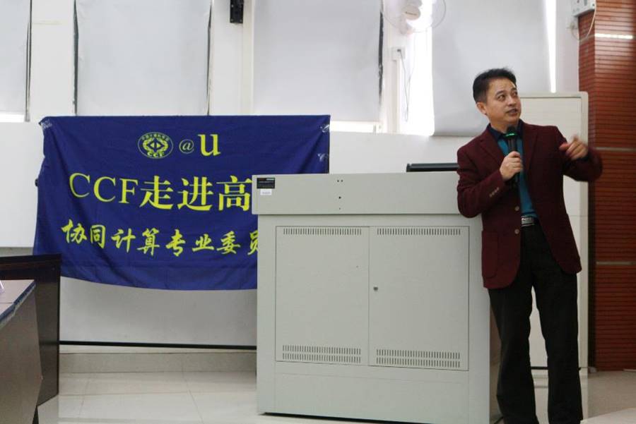 2017年11月21日下午,“CCF走进高校”活动来到广东财经大学。中国计算机学会汤庸教授、滕少华教授和刘冬宁教授担任讲者,信息学院院长贺敏伟、副院长王志坚,孟晓明老师、尹华老师、刘辉老师等出席了本次讲座。