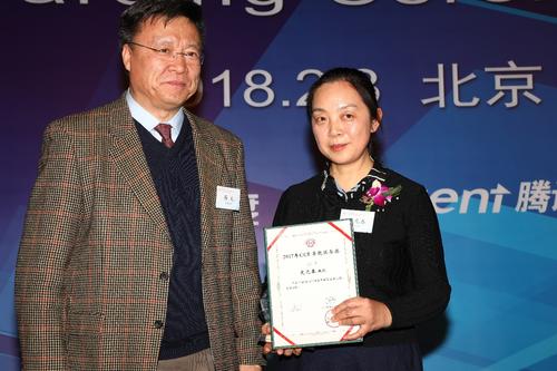 2006年设立的CCF优秀博士学位论文奖,授予在计算机科学与技术领域的基础理论、关键技术或应用技术方面有重要创新的博士学位论文的作者。2017年,陈璐(浙江大学)、董耀祖(上海交通大学)、解定宝(南京大学)、梁小丹(中山大学)、辛博(北京大学)、汪定(北京大学)、王举(西北大学)、邹冬青(北京航空航天大学)、魏恒峰(南京大学)、刘秀龙(大连理工大学)等10位青年学者获得这一荣誉。微软亚洲研究院一直赞助该奖项。颁奖会上,CCF理事长高文和微软亚洲研究院副院长张冬梅女士为10位获奖者颁发了证书和奖杯。