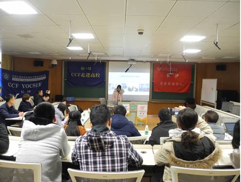 2018年1月14日, “CCF走进高校”活动来到国防科技大学。CCF杰出演讲者、阿里云高性能计算负责人何万青博士及CNCC-2017大会特邀讲者、2017 CCF青年“两秀讲者”、中科院信工所刘偲副研究员受邀为国防科技大学的师生带来一场高性能计算与人工智能的分享报告。