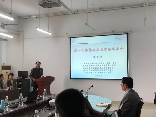 2018年4月10日上午,CCF山东师范大学学生分会联合CCF济南分部邀请到山东大学袁东风教授在信息学院506会议室举办了题为“新一代信息技术与智能化革命”的学术报告会。报告会由CCF济南分部监督委员会主席刘弘教授主持,CCF济南分部会员、CCF山东师范大学学生分会会员、学院部分师生共计90余人参加了此次活动。