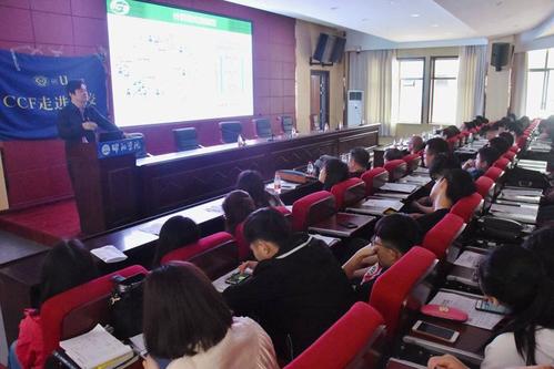 2018年4月4日,“CCF走进高校”活动来到邵阳学院,CCF杰出会员、湖南大学李仁发教授和CCF杰出会员、中科院计算所陈益强研究员为邵阳学院信息工程学院师生分别作了题为“专业认证若干问题的讨论”和“可穿戴AI:人机协同增强计算”的报告。两场报告分别由信息工程学院副院长黄国华教授和书记彭跃辉教授主持,信息工程学院300余名师生聆听了报告。