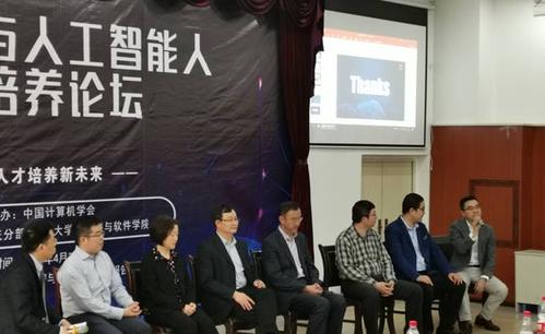 2019年4月21日上午,由CCF Yocsef重庆分论坛、CCF重庆分部以及重庆大学大数据与软件学院共同举办的大数据与人工智能人才培养论坛在重庆大学大数据与软件学院报告厅举行。论坛上,来自大数据和人工智能领域的多位专家学者通过主题报告和互动交流的形式,探寻学科时代新发展,展望人才培养新未来。参与本次论坛的嘉宾有国家级教学名师,国家万人计划领军人才,浙江工业大学王万良教授、教育部大学计算机教学指导委员会主任,原合肥工业大学党委书记李廉教授、国家“万人计划”科技创新领军人才,西南大学人工智能学院副院长段书凯教授;重庆邮电大学计算机学院/人工智能学院党委书记夏英教授;重庆大学大数据与软件学院智能科学系主任杨梦宁、阿里公司高校合作总监吴兴华、华为技术有限公司郑千先生、科大讯飞西南区副总裁杨洋。重庆交通大学信息科学与工程学院杨建喜、曹建秋;重庆师范大学计算机与信息科学学院魏延院长、重庆文理学院软件学院王瑞胡副院长、重庆工程职业技术学院信息工程学院杨智勇院长;重庆大学大数据与软件学院副书记萧倩、副院长张小洪、副院长蔡斌。还有其他来自重庆市高校教师学生、企业专家共100余人参加了本次论坛。重庆大学大数据与软件学院党委书记、CCF YOCSEF重庆分论坛荣誉委员文俊浩主持了本次论坛。