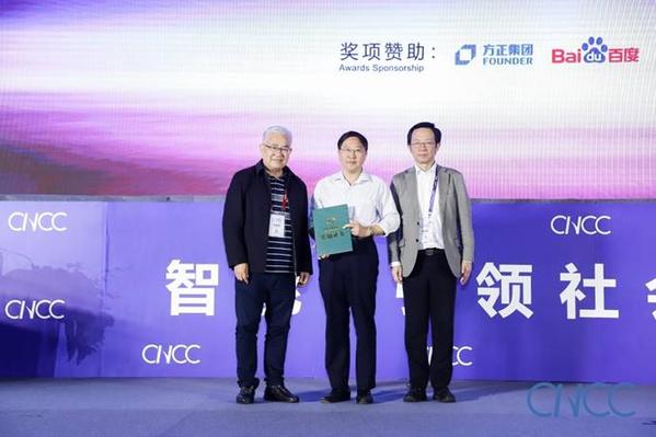 CCF理事长高文(左一)CCF副理事长王巨宏(右一)为自然科学奖二等奖颁奖