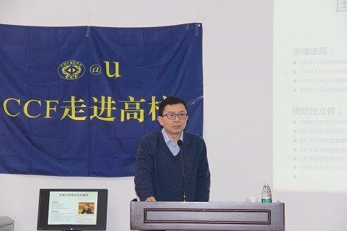 2016年12月18日,“CCF走进高校”系列公益讲座在陕西师范大学举行。CCF常务理事、副秘书长,奇虎360首席安全官谭晓生先生以“网络空间安全”为题作了精彩报告。报告由计算机科学学院院长王小明教授主持,学院教师、研究生及本科生近200人聆听了本次报告会,会场座无虚席。