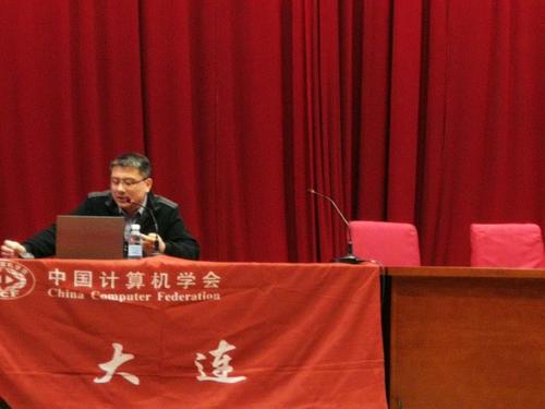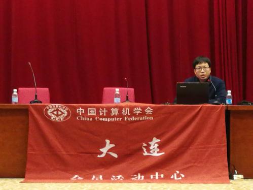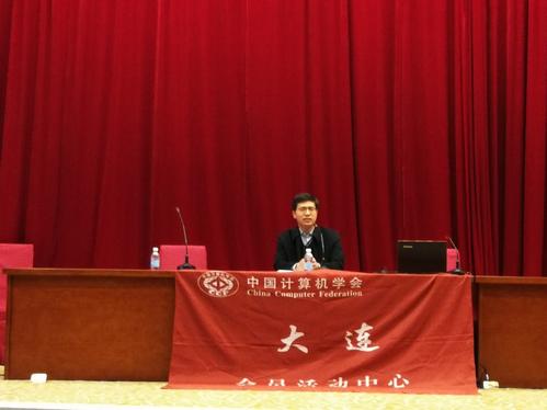 汪祖民代表CCF 大连致辞,对所有讲者、老师和同学的到来表示热烈的欢迎,发布了CCF大连分部 计算机公益活动计划安排,并预祝报告会取得圆满成功。