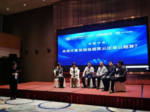 在话题讨论环节,执行主席鲍淑娣邀请了6位嘉宾上台——桑艳娟、陆忠华、季一木、李根国、陈根浪(浙江大学宁波理工学院计算机与数据工程学院副院长)和王涛(CCF苏州秘书长,CCF YOCSEF苏州主席(2016-2017)),并提出三个问题:超算与云计算的差异以及两者能否真正融合?未来计算发展到底是超算云还是云超算?宁波要不要建国家超级算力中心?