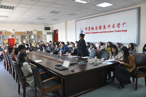 出席此次会议的嘉宾有辽宁师范大学计算机与信息技术学院副院长邹丽教授,数字媒体技术系主任韩丽教授,辽宁轻工业学校乔国荣教授,栋科软件董事长吴永鹏老师,辽宁师范大学计算机与信息技术学院方玲玲、傅博、张晶、张志鹏等教师以及研究生和本科生。
