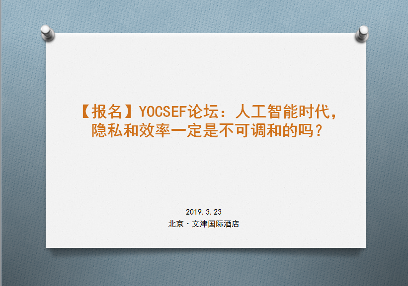 【报名】YOCSEF论坛 | 人工智能时代,隐私和效率一定是不可调和的吗?