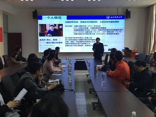 2019年3月27日上午,应CCF西安电子科技大学学生分会(以下简称CCF西电学生分会)督导主任、西电计算机科学与技术学院副院长苗启广教授邀请,西南科技大学吴亚东教授到访西电北校区参观交流,并为研究生会员作了题为“可视化让视觉分析触手可及”的学术报告。参加本次报告的有教师和CCF西电学生分会会员等40余人。本次活动由西电计算机科学与技术学院副教授权义宁主持。