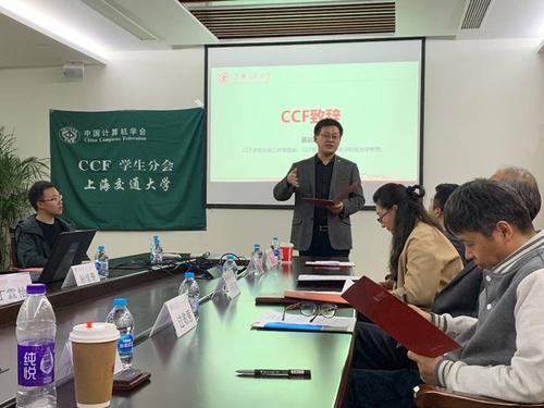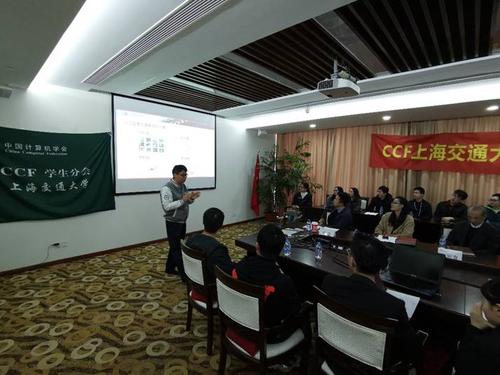 过敏意首先对CCF上交大学生分会的成立表示祝贺。他介绍了CCF的发展历史和章程,希望学生分会能够成为CCF和学生会员之间的桥梁,积极组织学术交流活动,利用相关资源提升学生会员的专业素质。苗启广代表CCF学生分会工作组对CCF上交大学生分会的未来发展提出期望。他指出,学生分会要充分利用CCF和各兄弟院校的资源,联动举办具有影响力的、高质量的活动。