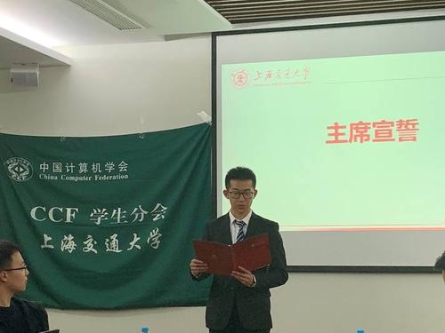 CCF上交大学生分会主席范晓宁进行就职宣誓并发言。他表示将会与执委会一起,竭尽全力为学生会员服务,积极履行职责,发挥资源优势,办有质量、有态度的学术活动,更好地聚集优秀的学生力量。CCF上交大学生分会候任主席、学生代表廖子墨对学生分会的未来发展和活动筹办表示了期待,希望能够与学生会员们一起发展,共同进步。