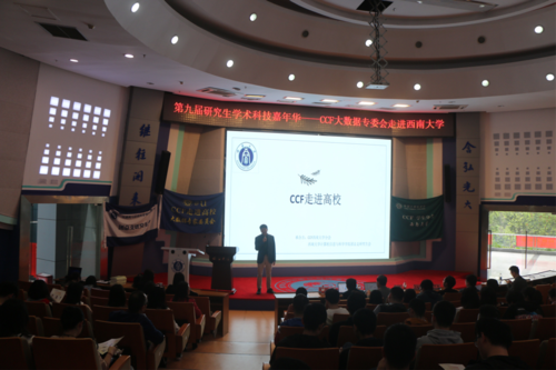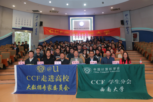 2019年3月30日,由CCF大数据专家委员会组织的“CCF走进高校”活动在西南大学学术报告厅成功举行。CCF会士、CCF大数据专家委员会常委、华中科技大学金海教授,CCF大数据专家委员会常委、蚂蚁金服全球可信身份平台ZOLOZ亚洲区总经理陈继东博士,CCF大数据专家委员会常委、南京大学黄宜华教授受邀进行了精彩的演讲。活动由CCF大数据专家委员会常委、西南大学计算机与信息科学学院张自力教授主持,西南大学计算机与信息科学学院的肖国强院长、贾韬副院长以及200多名同学参加了本次活动。