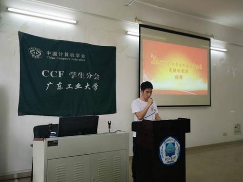 2019年3月31日,CCF广东工业大学学生分会成功举办了2018-2019年度换届大会,本次大会产生出了新一届的学生执行委员会。其中,谢琦彬同学成功竞选为委员会的主席。