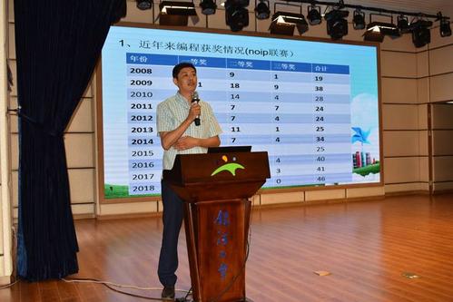 史习艺则以《信息学竞赛介绍及规划》为主题,分享了多年信息学竞赛教学中的经验,与参会人员互动交流,现场气氛热烈,收效良好。