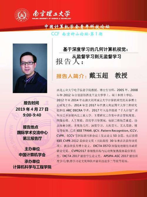 戴玉超教授报告题目:基于深度学习的几何计算机视觉:从监督学习到无监督学习