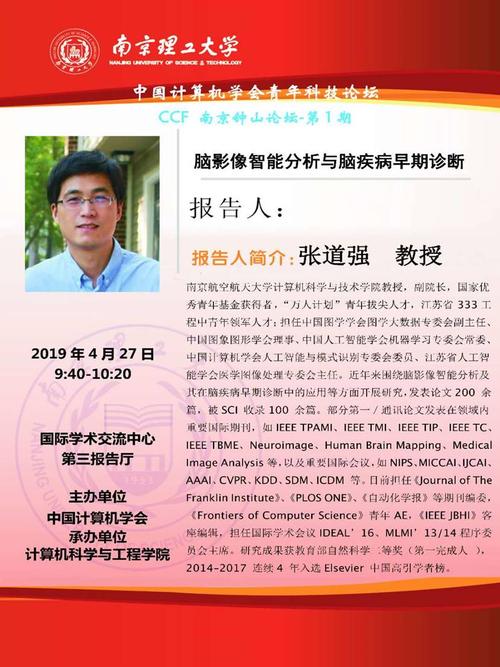 张道强教授报告题目:脑影像智能分析与脑疾病早期诊断