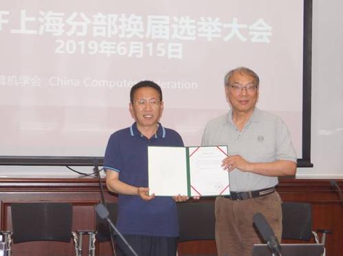 CCF会员与分部工委主任彭思龙(左一)向白硕颁发CCF上海主席任命书