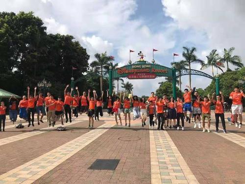 2019年7月12日早上科技交流团的老师和同学们一同乘车前往迪士尼乐园,乐园的工作人员带领同学们进入乐园的行政楼。首先,同学们在会议室观看了三段影片,主题包括全球迪士尼动画制作运用的科技、香港迪士尼中的科技创新。接着,同学们移步前往参观迪士尼独特的衣物借取系统。每件衣服都会缝上标签用于感应,而在机器上则有四处地方设有天线进行感应,感应成功员工则能顺利借走衣服。这个项目的创立主要是为了减少员工在借衣服时排队等候的时间,从而提高工作效率。参观结束后,老师和同学们在迪士尼乐园门口合影留念。