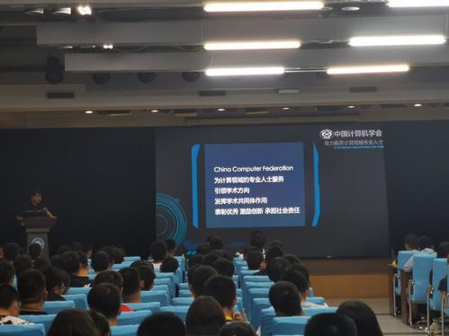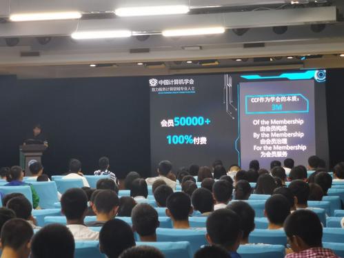 接着,又向大家介绍了CCF学生会员的相关政策。申请加入该学会的会员,必须拥护该学会的章程,按时缴纳会费。CCF学生会员可在每月获得由CCF官方邮箱发送的报刊资源并且可优惠或优先获得学会提供的服务。最后表示如果大家有意愿,可在大会结束后,现场报名CCF学生会员,并且表示期待大家的加入。
