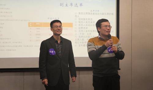在主席换届选举环节,由卢昱明(深圳信息职业技术学院)、齐竹云(北京大学深圳研究生院)两位参加竞选,最后投票选出了卢昱明当选新一届主席,并发表了当选感言。