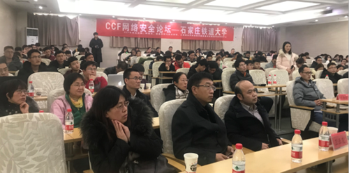 2019年1月7日下午,CCF石家庄分部网络安全论坛在石家庄铁道大学交通楼学术报告厅举行。会议由石家庄铁道大学信息学院院长朴春慧教授主持,CCF石家庄分部主席赵冬梅致欢迎辞。来自石家庄分部的会员,石家庄铁道大学、河北师范大学、河北科技大学、河北地质大学等高校的教师、研究生和本科生共计200余人参加了本次报告会。