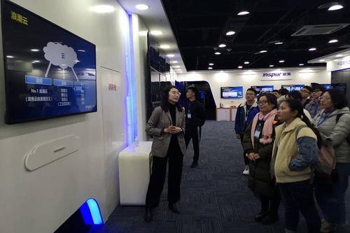 在浪潮科技园展厅,同学们在工作人员的讲解下,了解了浪潮集团的发展历程、企业文化、产品内容、发展规划以及未来的规划。工作人员又向大家展示了浪潮集团的各种前沿科技以及产品,其中不乏健康医疗大数据这种造福社会人类的前沿技术,整个过程中大家都认真参观,积极提问,现场气氛十分活跃,同学们受益匪浅。随后工作人员带领同学们参观了浪潮集团的工作地点,并表示欢迎同学们来浪潮工作。
