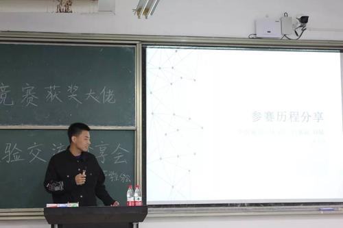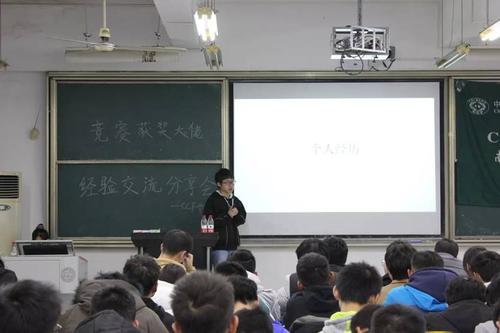 在陈英老师致开场词后,各位竞赛获奖的优秀学长依次上台演讲。