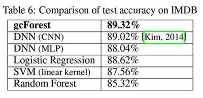 带着深度学习的关键在于特征学习和巨大模型的能力这一认识,我们在本文中试图赋予树集成这些属性,并提出了 gcForest 方法。与深度神经网络相比,gcForest在我们的实验中表现了极高的竞争力或更好的性能。更重要的是,gcForest 具有少得多的超参数,并且对参数设置不太敏感;实际上在我们的实验中,通过使用相同的参数设置在不同的域中都获得了优异的性能,并且无论是大规模还是小规模的数据,它的工作都很好。此外,作为一种基于树的方法,gcForest 应该比深度神经网络更容易进行理论分析,不过这超出了本文的讨论范围。我们很快会提供 gcForest 的代码。