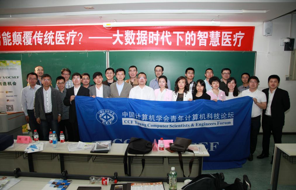 2017年4月14日,YOCSEF在北京大学第二教学楼405教室举行了人工智能颠覆传统医疗?——大数据时代下的智慧医疗学术报告会。中科院自动化所研究员田捷、微软亚洲研究院研究员闫骏、军事医学科学院研究员伯晓晨、百世伽科技CDO魏洪应邀做主题报告。CCF YOCSEF学术委员会委员吴宗友、邬向前,侯任委员彭绍亮担任本次执行主席并主持报告会。学术委员会主席韩银和、副主席何万青、委员白瑞雪,太原、大连等分论坛委员,以及相关领域专业人士150余人参加了报告会。报告会吸引了新华社、中国科学报、网易科技、雷锋网等媒体采访和报道。