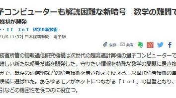 日本总务省下属的信息通信研究机构开发出了新型加密技术,连新一代超高速计算机——量子计算机也难以破解。该技术的原理是将需要保护的信息转换为特殊的数学问题,可代替通信网等现有加密技术来使用。