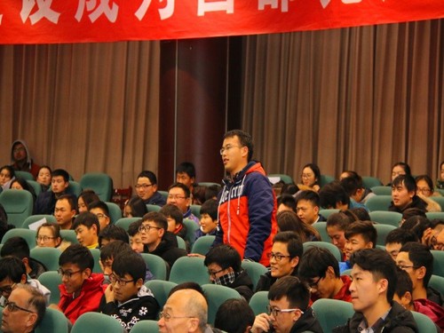 臧根林以自身成长为笔,以科技社会风云变化为图纸,深刻地勾勒出一幅扣人心弦的创业故事和人生经历图景。报告中他幽默诙谐的语言、情真意切的故事以及热情满满的互动环节都吸引着同学们广泛的注意和思考。无论是其贫困的出生背景、艰苦的求学经历,还是艰辛的创业历程都激励着在场的所有同学。同时,机会、团队、信任、核心竞争力等包含在创业过程中的关键词深深地印刻在每位同学的脑中、心中,引发思考,带来感悟。