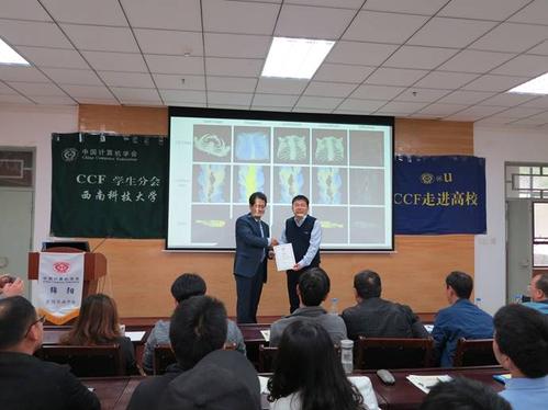 2019年4月12日,由CCF西南科技大学学生分会举办的“CCF走进高校”活动在西南科技大学成功举行。本次活动特别邀请了CCF理事、CCF大数据专家委员会委员、北京大学信息科学与技术学院袁晓如研究员作报告。原YOCSEF济南学术委员会主席、山东工商学院计算机学院原达教授,中国工程物理研究院计算机应用研究所刘建波研究员,绵阳市电子信息产业专家咨询委员会委员赵淳总经理等作为嘉宾出席了报告会议。西南科技大学计算机科学与技术学院诸多老师与学生都共同参与。