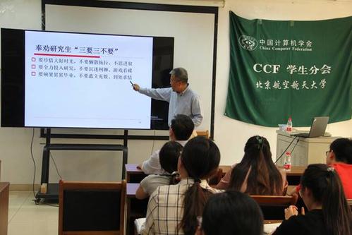 2019年5月9日,由北航自动化学院和计算机学院联合承办的“CCF走进高校”活动在北京航空航天大学圆满举办。本次活动特别邀请了CCF会士、清华大学杨士强教授出席讲座。作为CCF主办的特色活动,大会吸引了近百名学生的踊跃报名参与。活动持续了一个小时,尽管会场内的气温很高,但同学们依旧没有懈怠,全程专注于杨老师的讲座。同学们的认真态度也让杨老师十分欣慰。